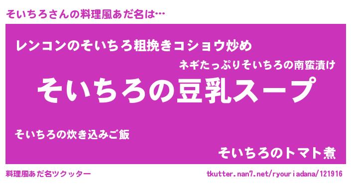 | 胡散臭い通販商品みたいなあだ名 | 『信頼と実績のサプリメント…その名も「そいちろ」』 |