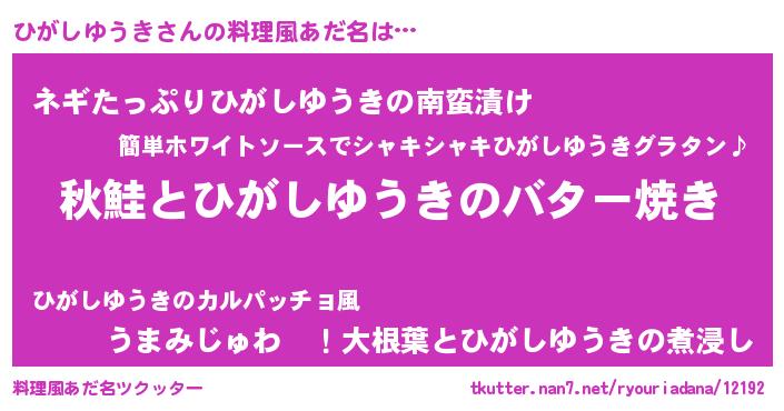 | ヘコむあだ名 | 『ひがしゆうき(笑)』『ひがにゅー』 |