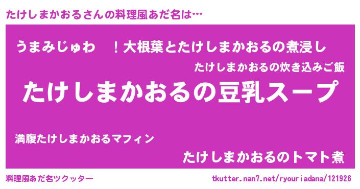 | ヘコむあだ名 | 『たけっぺ』『レバニラ』『たけにー』 |