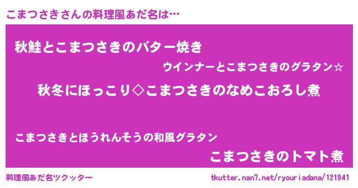 | 意味不明あだ名 | 『永久保存こまつさき』 |