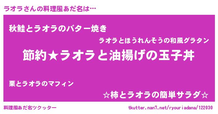| ヘコむあだ名 | 『ラオにー』『ラオラ(小並感)』 |