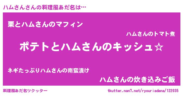 | 胡散臭い通販商品みたいなあだ名 | 『伝統あるサプリメント…その名も「ハムさん」』 |