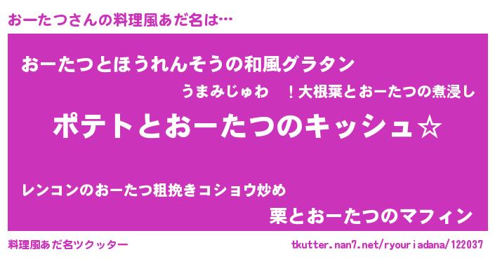 | 胡散臭い通販商品みたいなあだ名 | 『伝統あるサプリメント…その名も「おーたつ」』 |