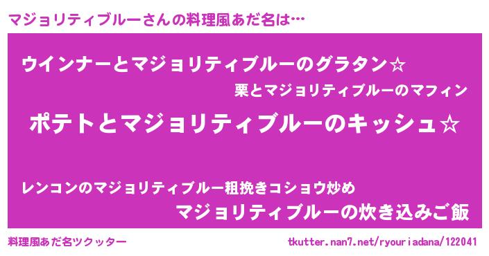 | 意味不明あだ名 | 『とにかく怪しいマジョリティブルー』 |
