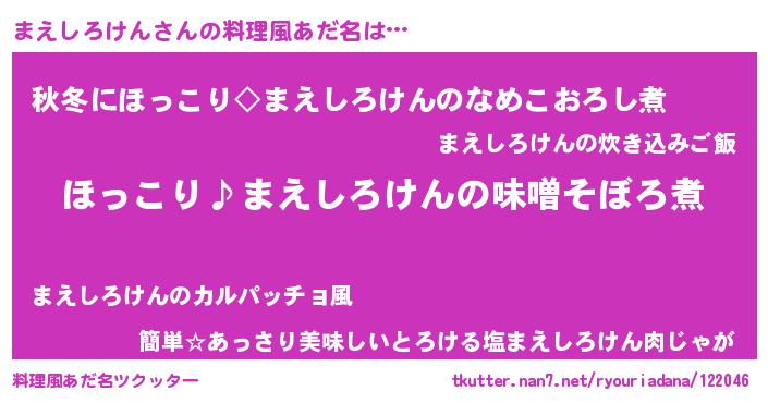 | ヘコむあだ名 | 『まえもー』『まえしろけん(笑)』 |