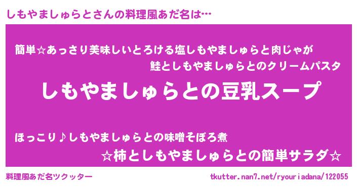 | 女子向けラノベタイトル風あだ名 | 『しもやましゅらとは平凡を望む』 |