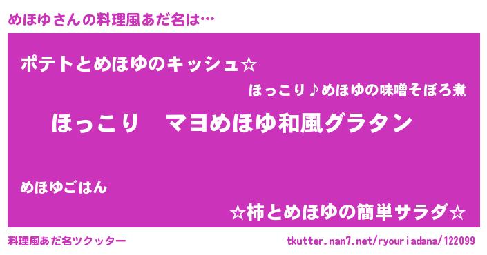 | ポケモン風あだ名 | 『メーホイ』『ヒメホユ』 |