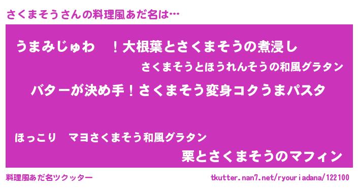 | ヘコむあだ名 | 『なまこ酢』『さくまそう(笑)』 |