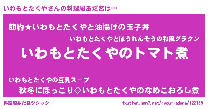 | ヒーロー風カッコイイあだ名 | 『友情の使者いわもとたくや』 |