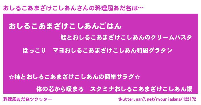 | 欧米人風あだ名 | 『ダレノガレおしるこあまざけこしあん』 |