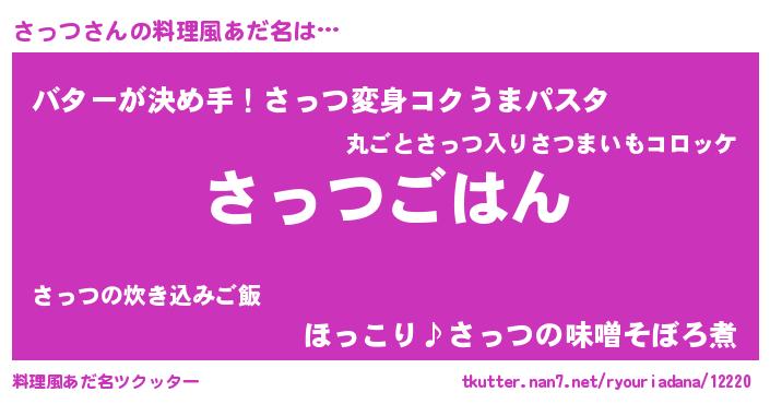 | 男性向けラノベタイトル風あだ名 | 『転生したらさっつだった件』 |