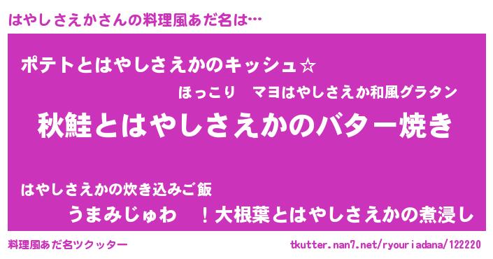 | 欧米人風あだ名 | 『ダルビッシュはやしさえか』 |