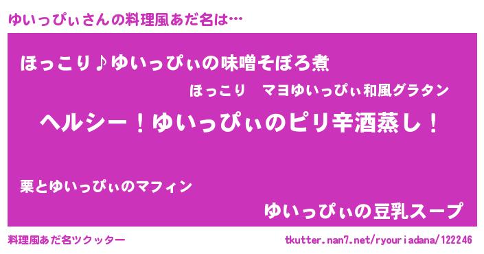 | 意味不明あだ名 | 『自称ゆいっぴぃ』『ペロリンゆいっぴぃ』 |