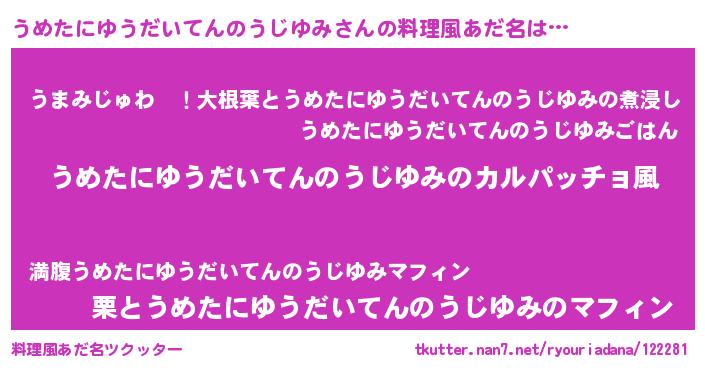 | 意味不明あだ名 | 『住所不定無職うめたにゆうだいてんのうじゆみ(12歳)』 |