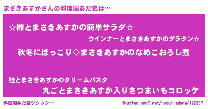 | 意味不明あだ名 | 『住所不定無職まさきあすか(91歳)』 |
