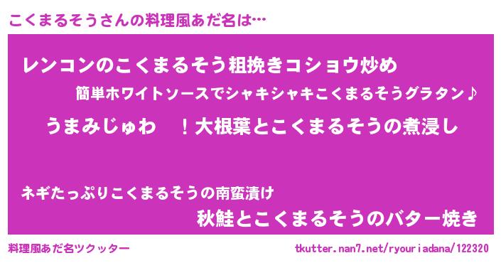 | 意味不明あだ名 | 『こくまるそうフォーエバー』 |