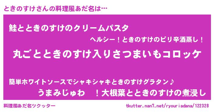 | 胡散臭い通販商品みたいなあだ名 | 『世界中を虜にした100年もののヴィンテージワイン…その名も「ときのすけ」』 |