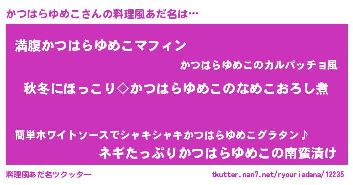 | ヘコむあだ名 | 『かつはらゆめこ(遠い目)』『かつもー』 |