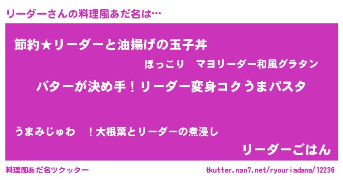 | 女子向けラノベタイトル風あだ名 | 『リーダー恋絵巻』『リーダーの婚約者』 |