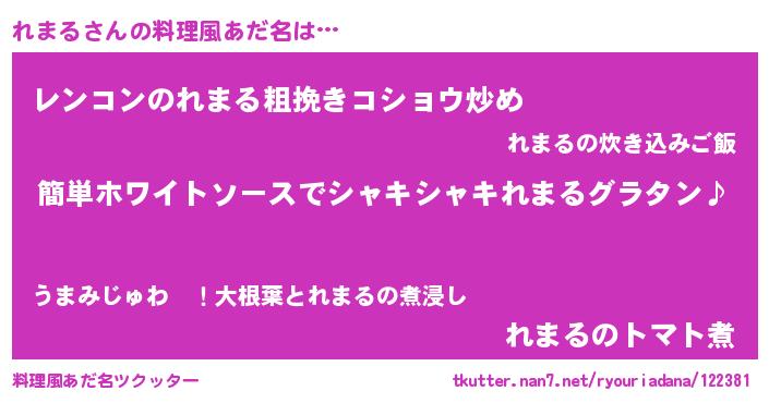 | 男性向けラノベタイトル風あだ名 | 『れまるの嫁は女の子じゃないと思った?』 |