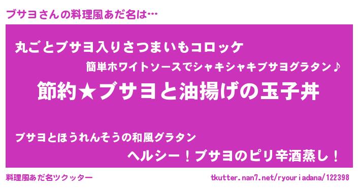| ポケモン風あだ名 | 『ブサチュウ』『ブーサイ』 |