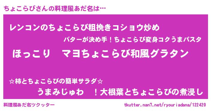 | 意味不明あだ名 | 『住所不定無職ちょこらび(74歳)』 |