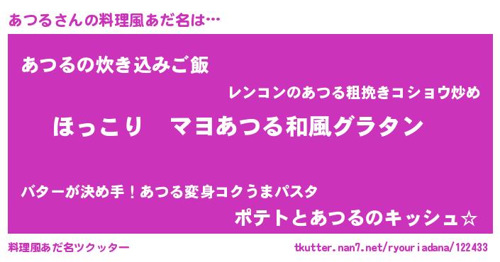 | 意味不明あだ名 | 『住所不定無職あつる(3歳)』『自称あつる』 |