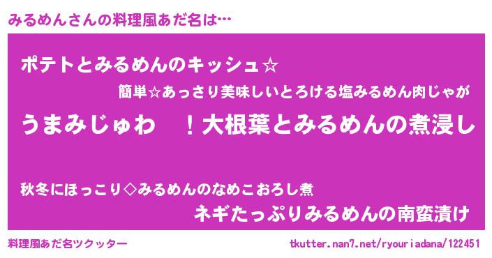 | 欧米人風あだ名 | 『みるめんクリステル』 |