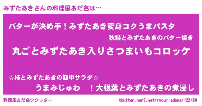| 意味不明あだ名 | 『住所不定無職みずたあき(2歳)』 |