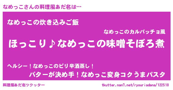 | 男性向けラノベタイトル風あだ名 | 『なめっこの憂鬱』『魔弾の王となめっこ』 |