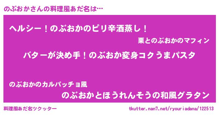 | 女子向けラノベタイトル風あだ名 | 『のぶおか恋絵巻』 |