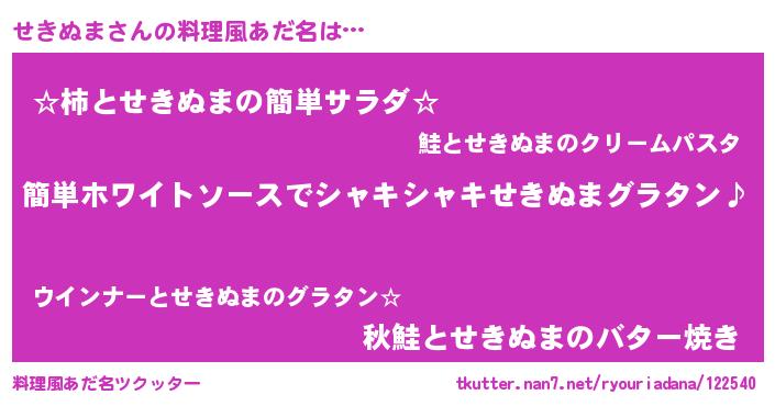 | 胡散臭い通販商品みたいなあだ名 | 『全米が絶賛したサプリメント…その名も「せきぬま」』 |