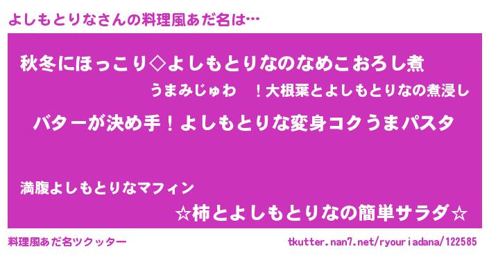 | ヒーロー風カッコイイあだ名 | 『愛の使者よしもとりな』『天弓騎士ヨシ』 |
