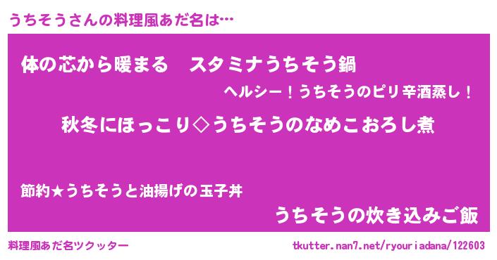 | 胡散臭い通販商品みたいなあだ名 | 『運命の人と巡り会える高級そうな皿…その名も「うちそう」』 |