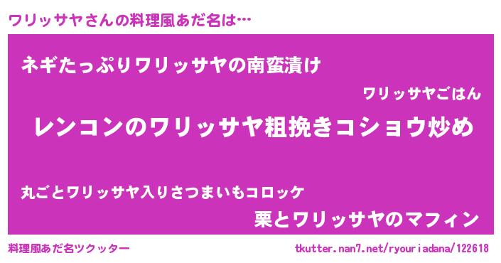 | 胡散臭い通販商品みたいなあだ名 | 『ガンによく効くアガリクス…その名も「ワリッサヤ」』 |
