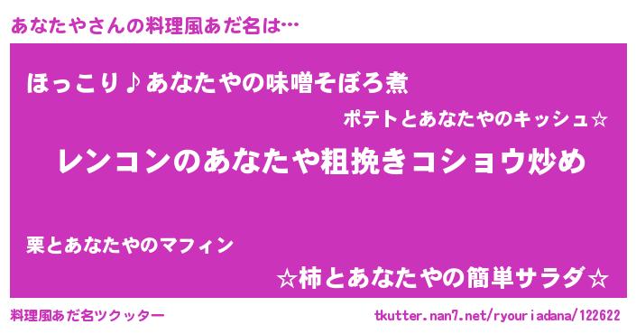 | 意味不明あだ名 | 『自称あなたや』『ペロリンあなたや』 |
