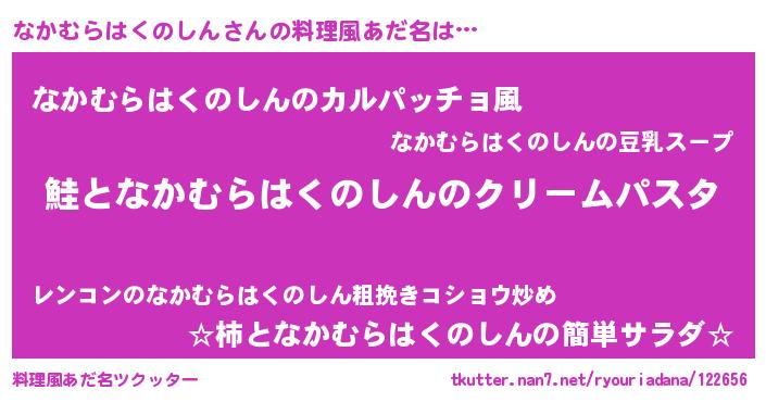 | 男性向けラノベタイトル風あだ名 | 『ノーゲーム・ノーナカムラハクノシン』 |