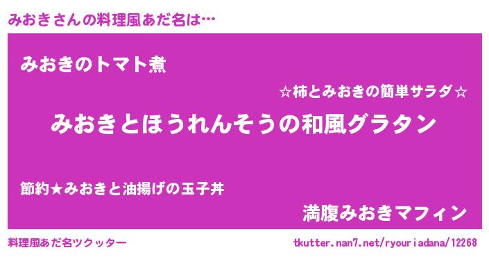 | 意味不明あだ名 | 『もやし科みおき属』『永久保存みおき』 |