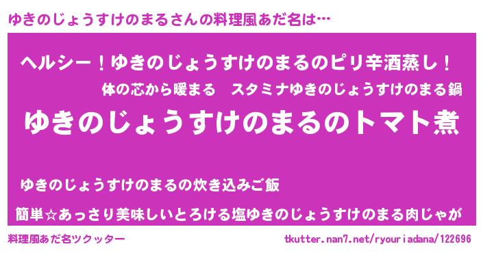| 女子向けラノベタイトル風あだ名 | 『ゆきのじょうすけのまる夫妻のなれそめ』 |