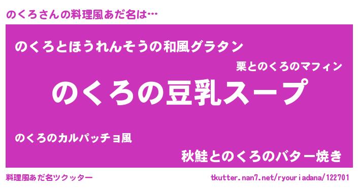 | 胡散臭い通販商品みたいなあだ名 | 『信頼と実績のサプリメント…その名も「のくろ」』 |