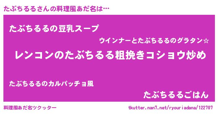 | 女子向けラノベタイトル風あだ名 | 『たぶちるるなんてお断りですっ。』 |