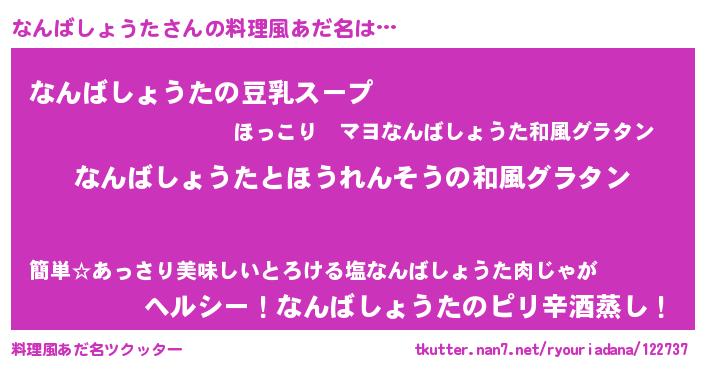 | 男性向けラノベタイトル風あだ名 | 『なんばしょうた~年齢イコール彼女いない歴の魔法使い~』 |
