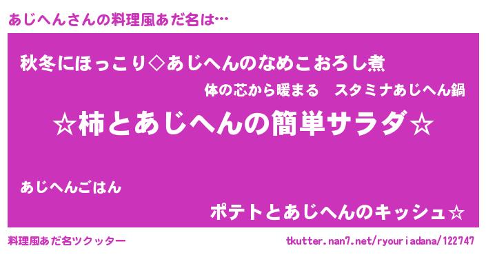 | ヒーロー風カッコイイあだ名 | 『黄金騎士アジ』『ウルトラあじへんマン』 |