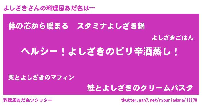 | 女子向けラノベタイトル風あだ名 | 『闇のよしざき』『よしざきの雑貨屋さん』 |
