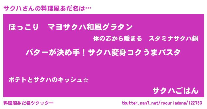 | 女子向けラノベタイトル風あだ名 | 『サクハ恋絵巻』『サクハの雑貨屋さん』 |