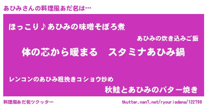 | ポケモン風あだ名 | 『アヒミダネ』『アヒチュウ』 |