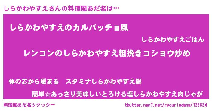 | 意味不明あだ名 | 『自称しらかわやすえ』 |