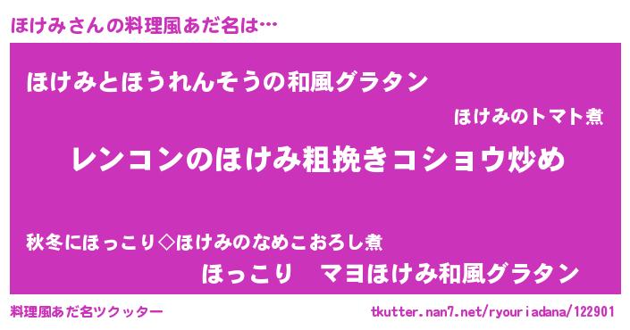 | 意味不明あだ名 | 『自称ほけみ』『なめこ科ほけみ属』 |