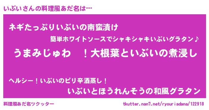 | 2回繰り返すあだ名 | 『いいぶぶ』『いぶいぶ』『わなわな』 |