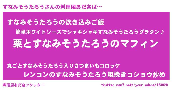| 胡散臭い通販商品みたいなあだ名 | 『テレビで話題の高麗人参…その名も「すなみそうたろう」』 |